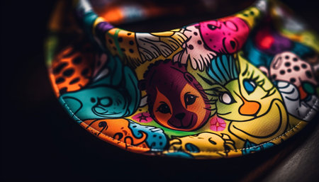 Indigenous craft product showcases ornate animal pattern in multi colored textile generated by artificial intelligence
