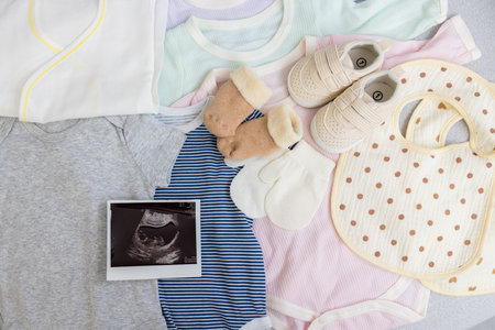 Ultrasound photo with new born baby clothing