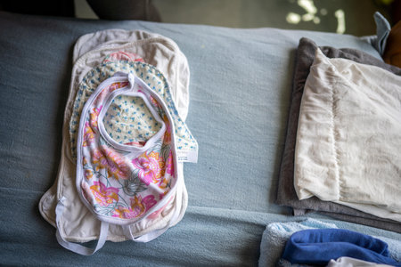 Folding and washing clean baby clothes in a home