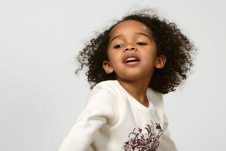 Portrait of a happy little girl on a white background.