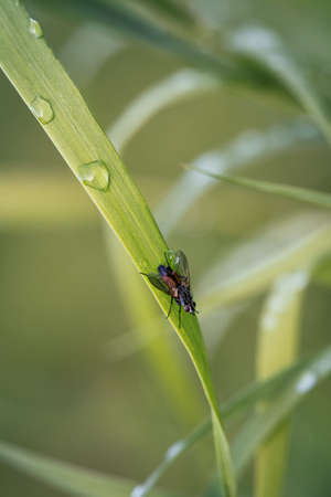 little fly at grass in the green nature season garden