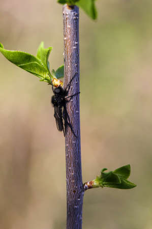 black fly on a tree. close-up