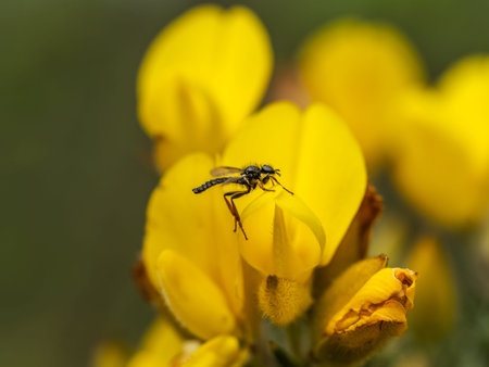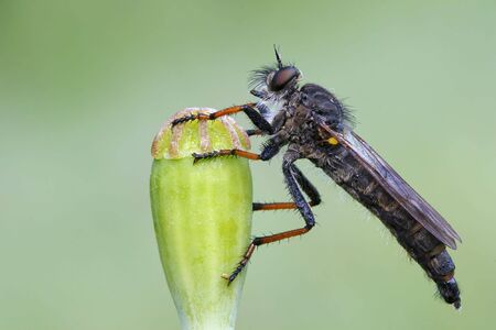 Macro shot of a robber fly in the garden