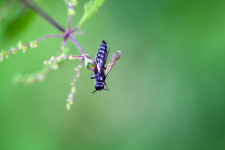A common tiphiid wasp, Tiphia femorata, on a plant.