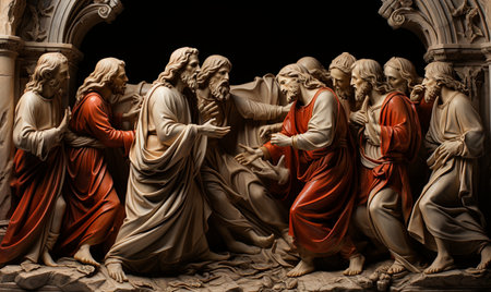 The Last Supper, Jesus the statue of a fresco painting on a stone
