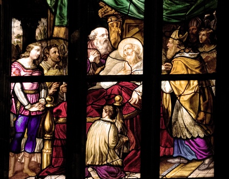 Triel sur Seine, France - april 3 2016 : historical stained glass window in Saint Martin church