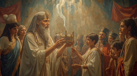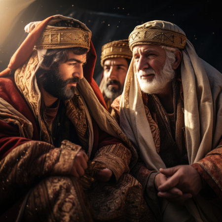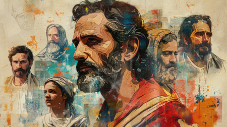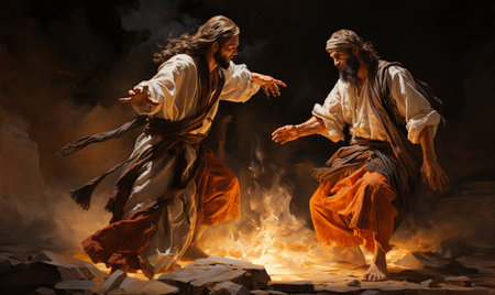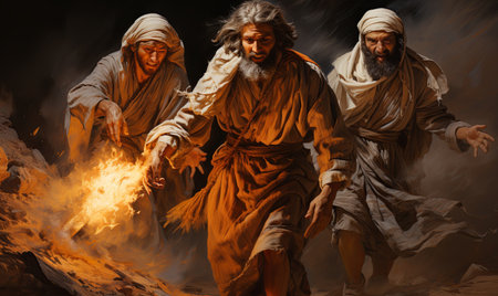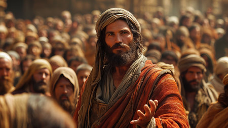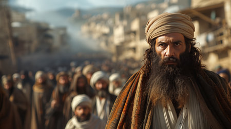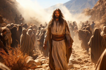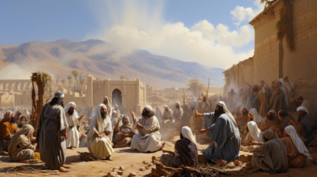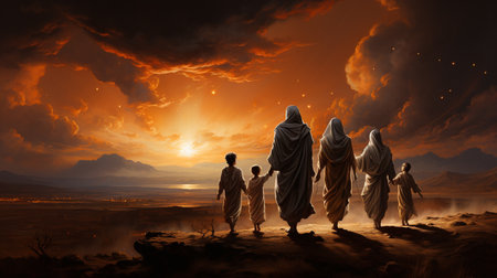 Illustration of Joshua leading the people of Israel in the desert on the way to Canaan Generative AI.