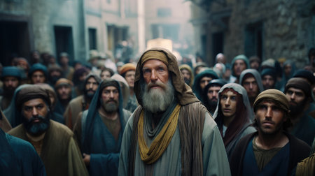 Illustration of Moses leading the people of Israel in the desert on the way to Canaan Generative AI.