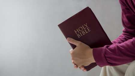 Christian woman holds bible in her hands. Concept for faith, spirituality and religion. Peace, hope.