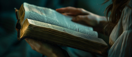 Christian teen girl holds bible in her hands. Reading the Holy Bible. Concept for faith