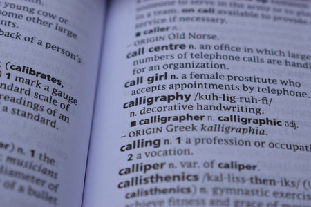 Definition Of English Dictionary Close Up Of Page Print With Word - calligraphy