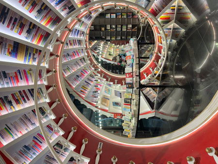 Seoul, South Korea - June 22, 2017: Books on the shelves in Starfield Library in Starfield COEX Mall, Seoul