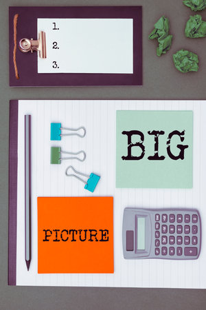 Handwriting text Big Picture. Business idea most important facts about certain situation and its effects