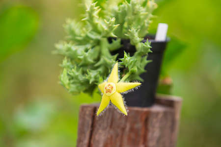 flower of Buddha belly plant or bottle scrub in backyard garden