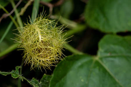 Close up Passiflora foetida or wild maracuja with green leaf, in Thailand.