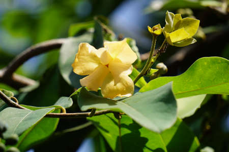 The blooming green buds turn yellow flowers in Thailand.