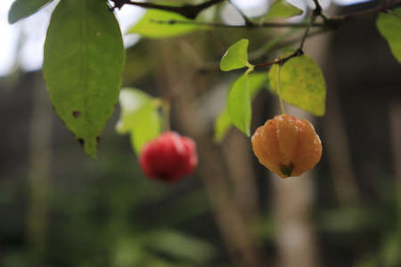 Closeup focus to SURINAM CHERRY on the tree