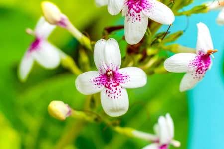 White and pink flower in the garden with green leaf background, Thailand.
