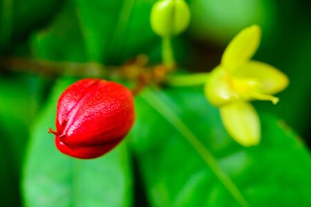 Ixora flower blooming in the garden with natural background.