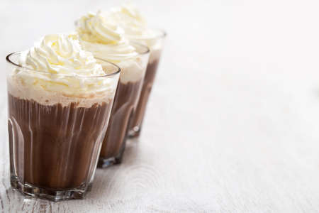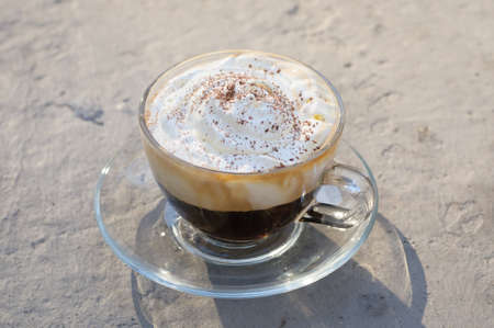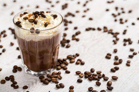 Coffee mocha or mocaccino. Sweet drink made of coffe, chocolate and whiped cream.
