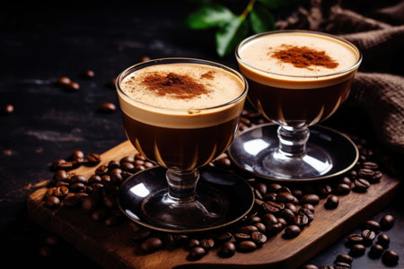Close-up top view of ingredients Irish coffee, Coffee. AI Generated.