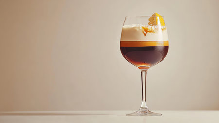 A coffee-based cocktail in a glass against a dark backdrop, radiating sophistication and mystery