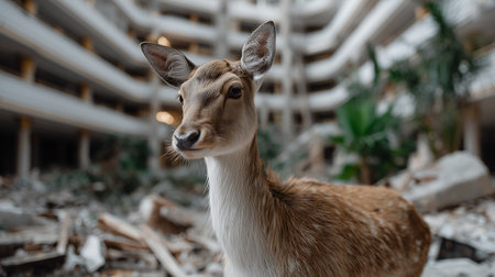 Deer in the abandoned building. The concept of loneliness and sadness.