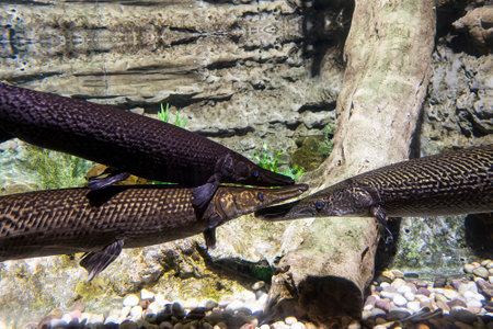 Duckbill catfish in the zoo. Lepisosteus platyrhincus.