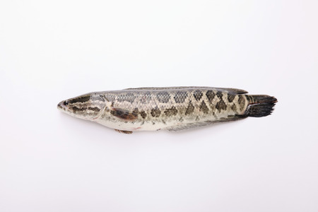 A snakehead isolated on a white background, close-up