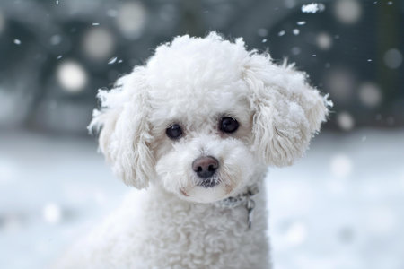 Adorable Bitchon dog snow. Happy pet. Generate Ai
