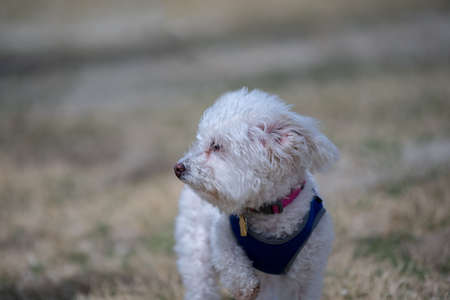 Dog so cute mixed breed with Shih-Tzu, Pomeranian and Poodle looking and waiting something with interest when vacation travel