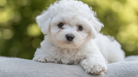 Adorable White Bichon Frise Puppy with Expressive Eyes and Gentle Charm in Close-Up Portrait