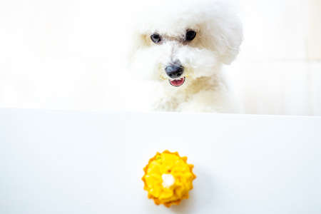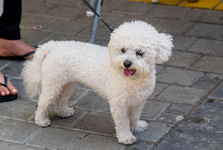 Cute bichon frise close up. Purebred dog. Pet animals.