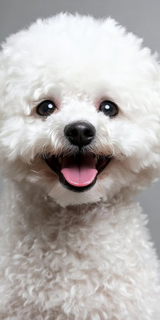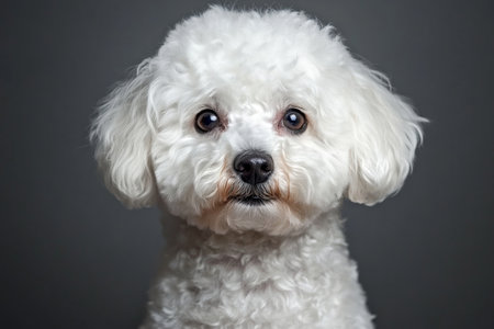 Adorable Bichon Frise Portrait with Charming Expression Against Soft Gray Studio Backdrop