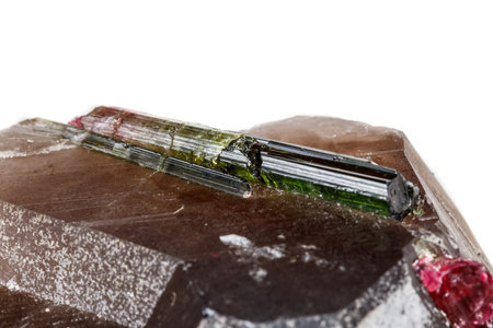Macro tourmaline mineral stone on white background close up