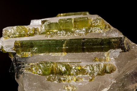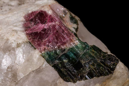 Macro tourmaline mineral stone on black background close up