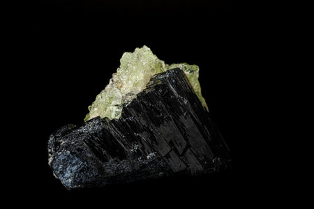 macro mineral tourmaline stone on black background close up