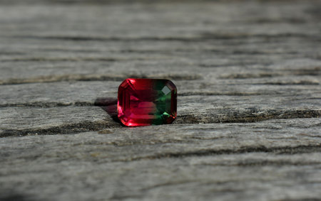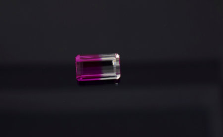 A beautifully faceted bicolor tourmaline gemstone, transitioning between pink and green.