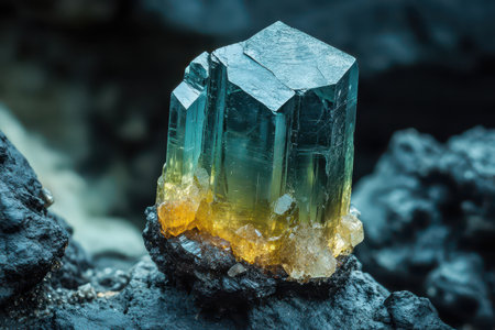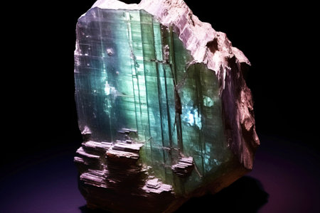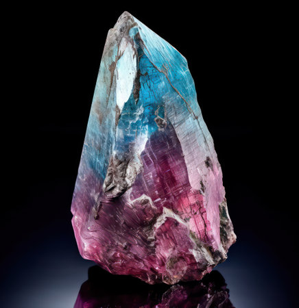 Raw Blue and Green Tourmaline Crystal on Dark Background in Studio Light