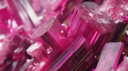 Close-up view of vibrant pink crystals showcases their intricate textures and geometric shapes. This natural formation highlights the stunning beauty of minerals in nature.