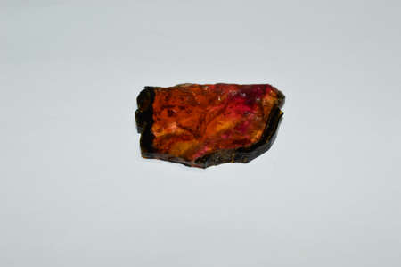 Natural rough bi-color spinel gemstone on white background (selective focus)