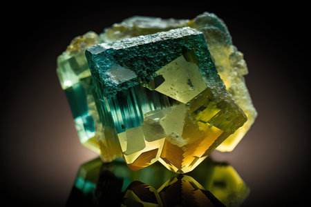 Fluorite gemstone on dark background. 3D rendering
