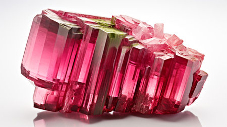 Front view of shining bright tourmaline gemstone illustration on a white light background. Generative AI illustration.