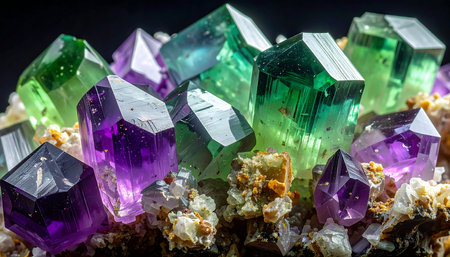 multicolored crystals of amethyst, amethyst on a black background