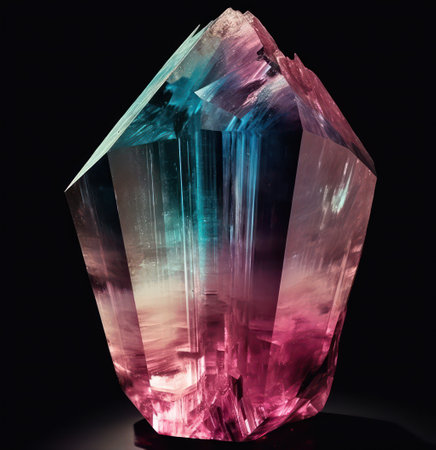 AI Generated. Polished Tourmaline Gemstone Multicolored Crystal in CloseUp Double Exposure Silhouette
