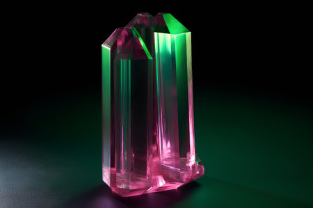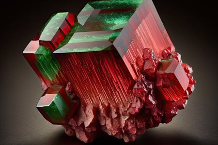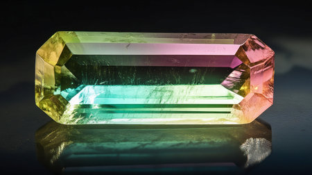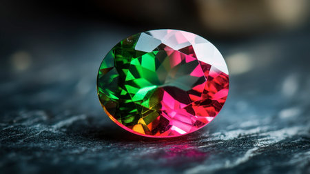 Front view of shining bright tourmaline gemstone illustration on a dark background. Generative AI illustration.