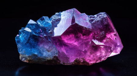 Alexandrite is a rare precious natural geological stone on a black background in low key. Fashionable jewelry elegant decoration. AI generated.