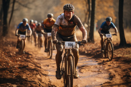 Blurred with mountain bike race Cross country.