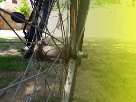 Close up of vintage bicycle wheel