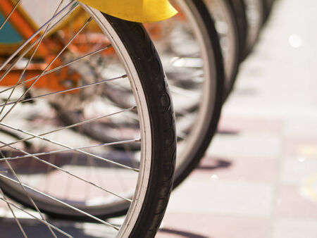 Wheel detail of a group of bikes